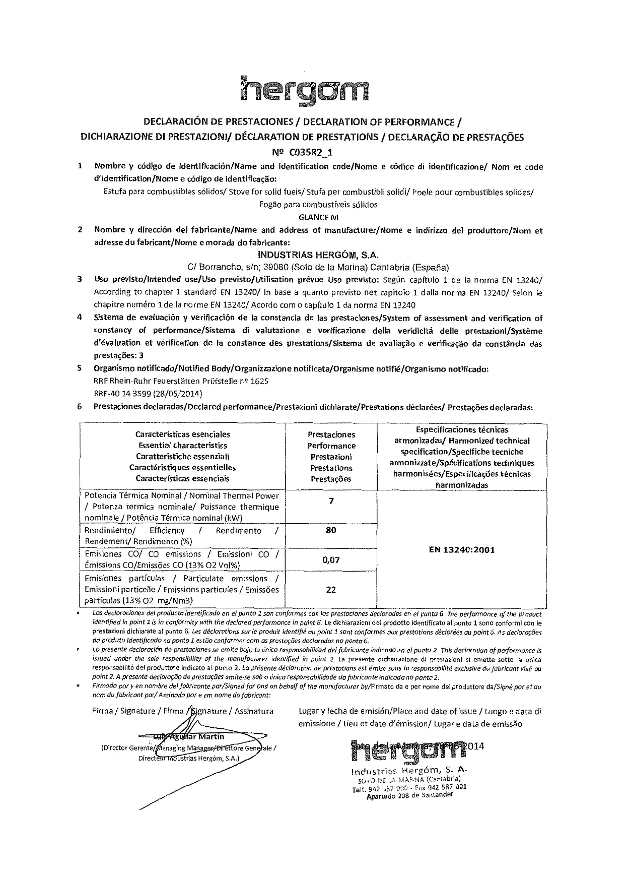 hergom GLANCE - Declaration of Performance Document; Declared Performance Data Summary