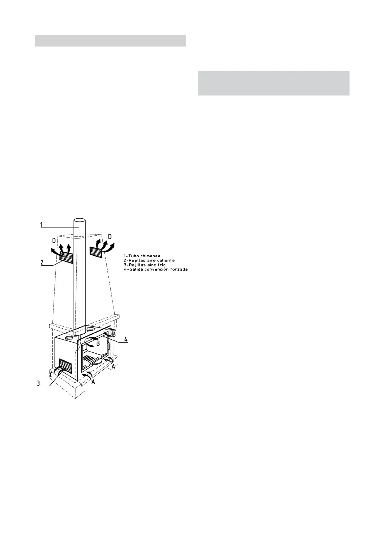 caliente a la estancia por la parte superior “B”.
