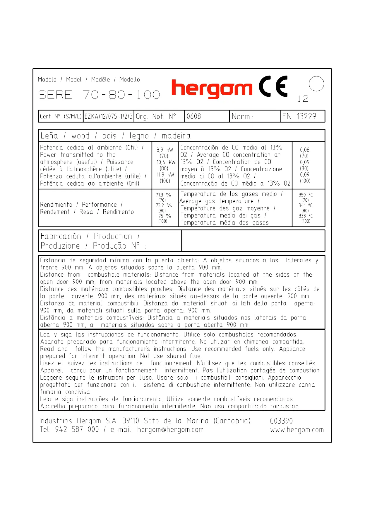 hergom SERE 70 - Product Information and Usage; Safety Distances
