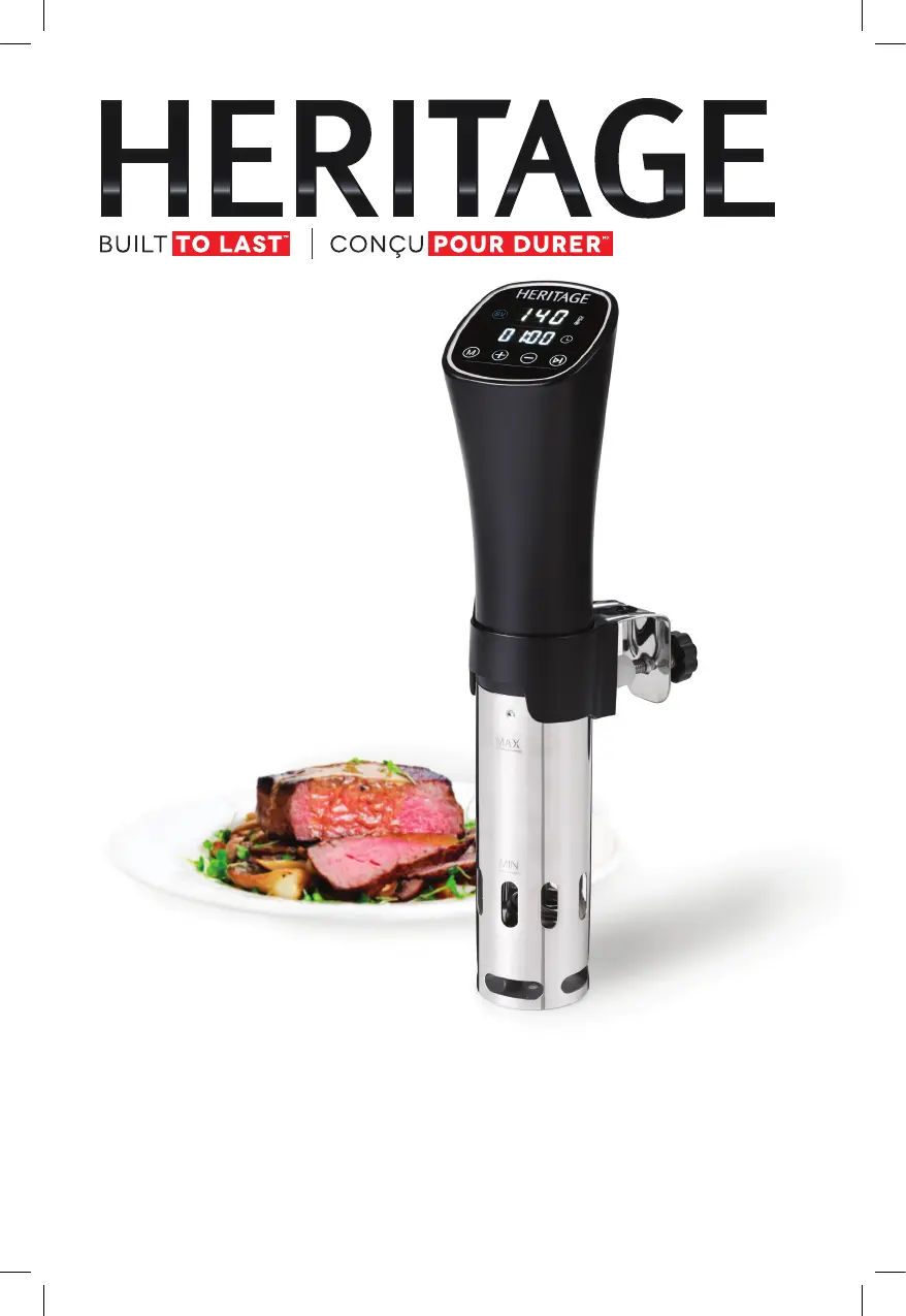 If your Heritage Kitchen Appliances Sous Vide precision cooker displays 'E1' and has stopped, it could be due to several reasons: * The water pot may not be filled adequately. Ensure the water level is above the minimum mark by unplugging the unit, adding water, and plugging it back into a 120 AC-3 prong outlet. * The water level might have dropped below the minimum. Follow the same steps as above to replenish the water. * The cooker might not be on a level surface. Try repositioning it on a clean, flat surface. * If none of these resolves the issue, there may be an electronics error. In that case, please contact customer service.