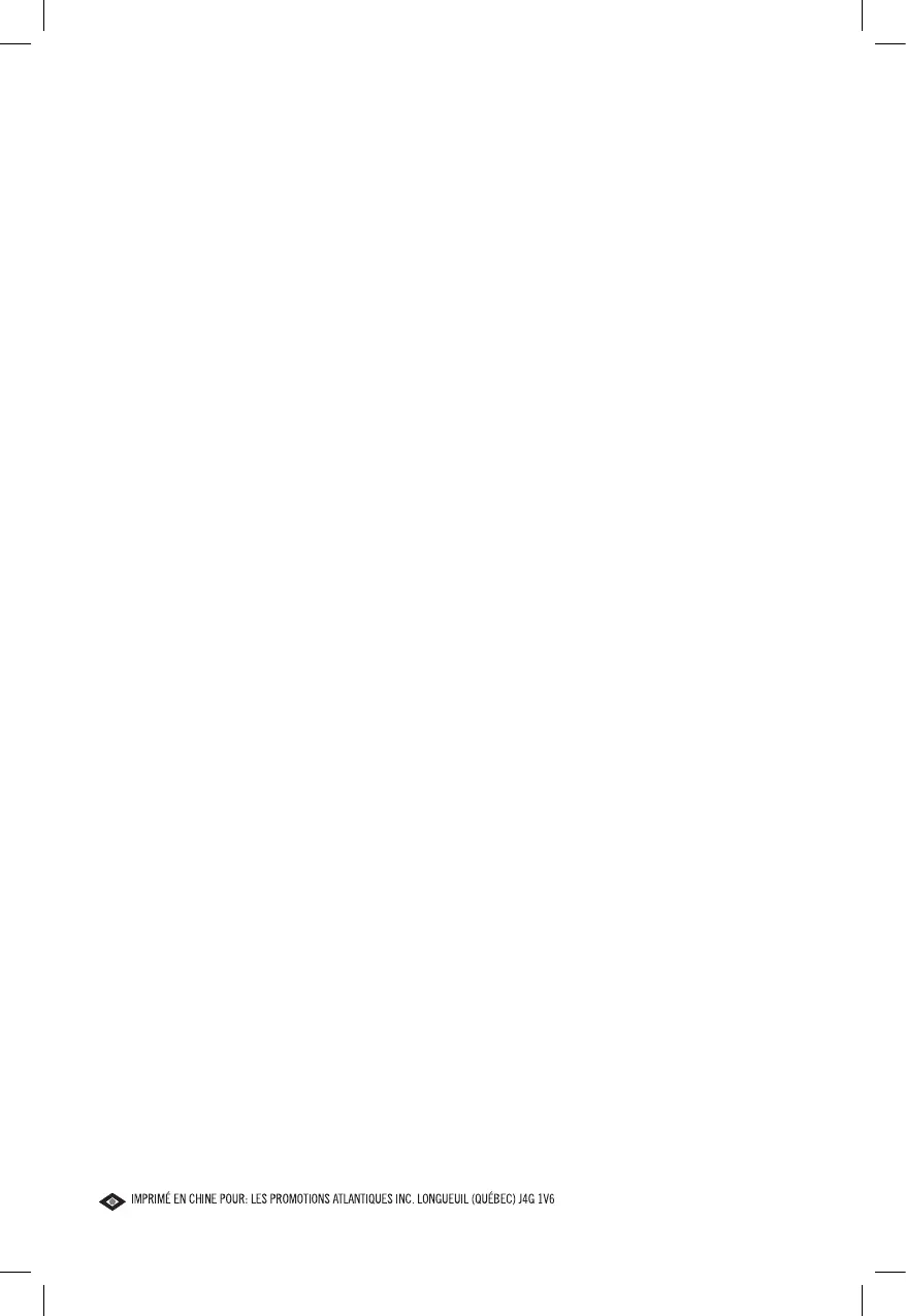 d’un (1) an suivant l’achat. Conserver le reçu original comme preuve d’achat. Pour être