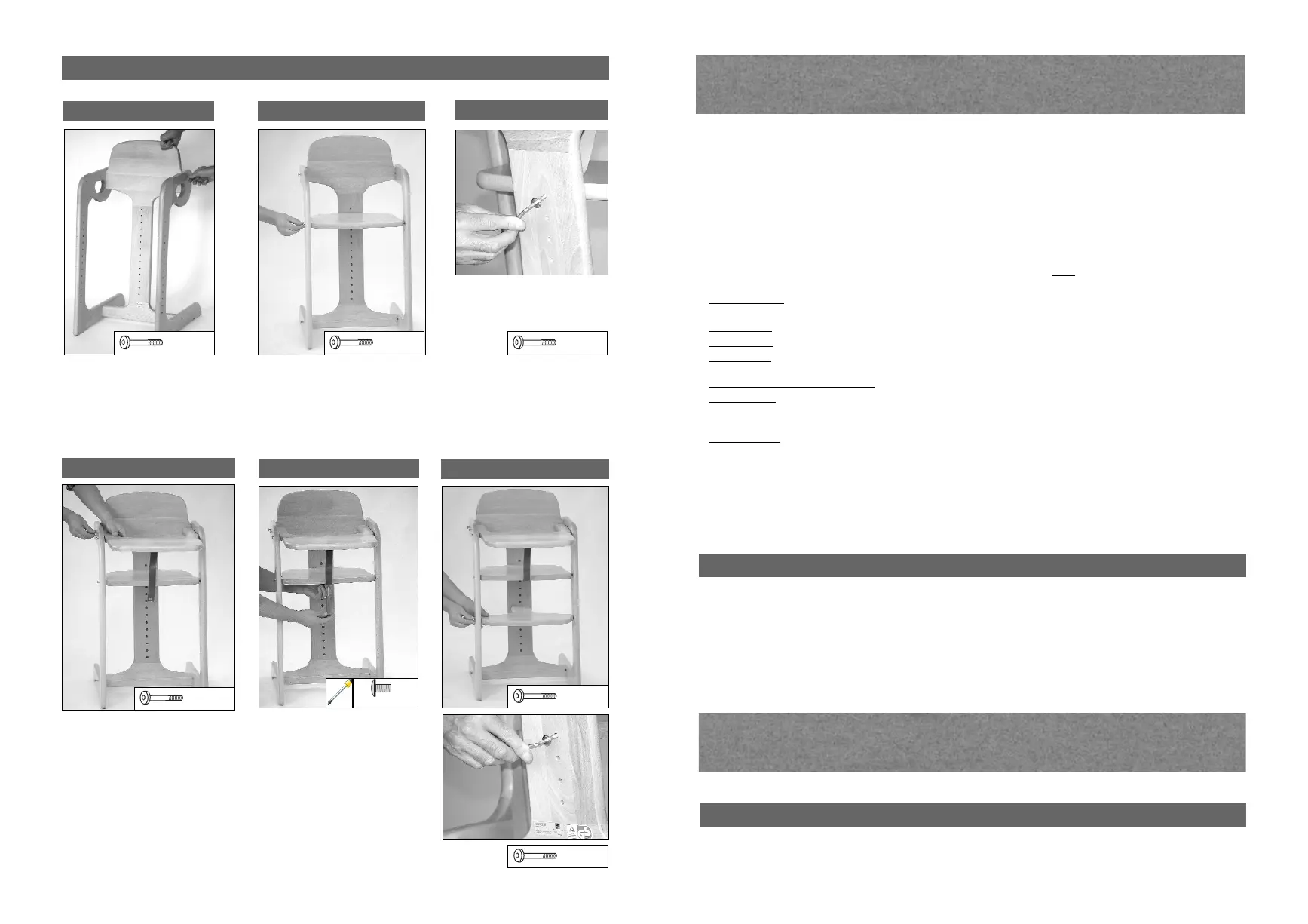 Attention: The high chair is not designed to be dismantled for transport or storage.