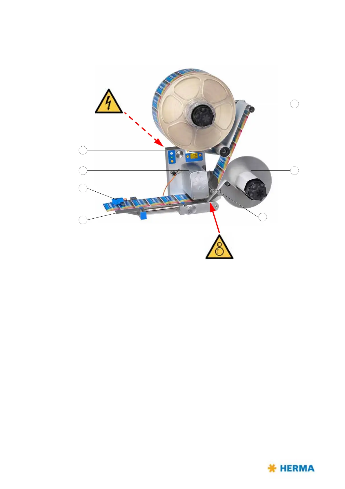 1. Unwinding the label web (with the help of the „unwinder“; shown here: standard unwinder;