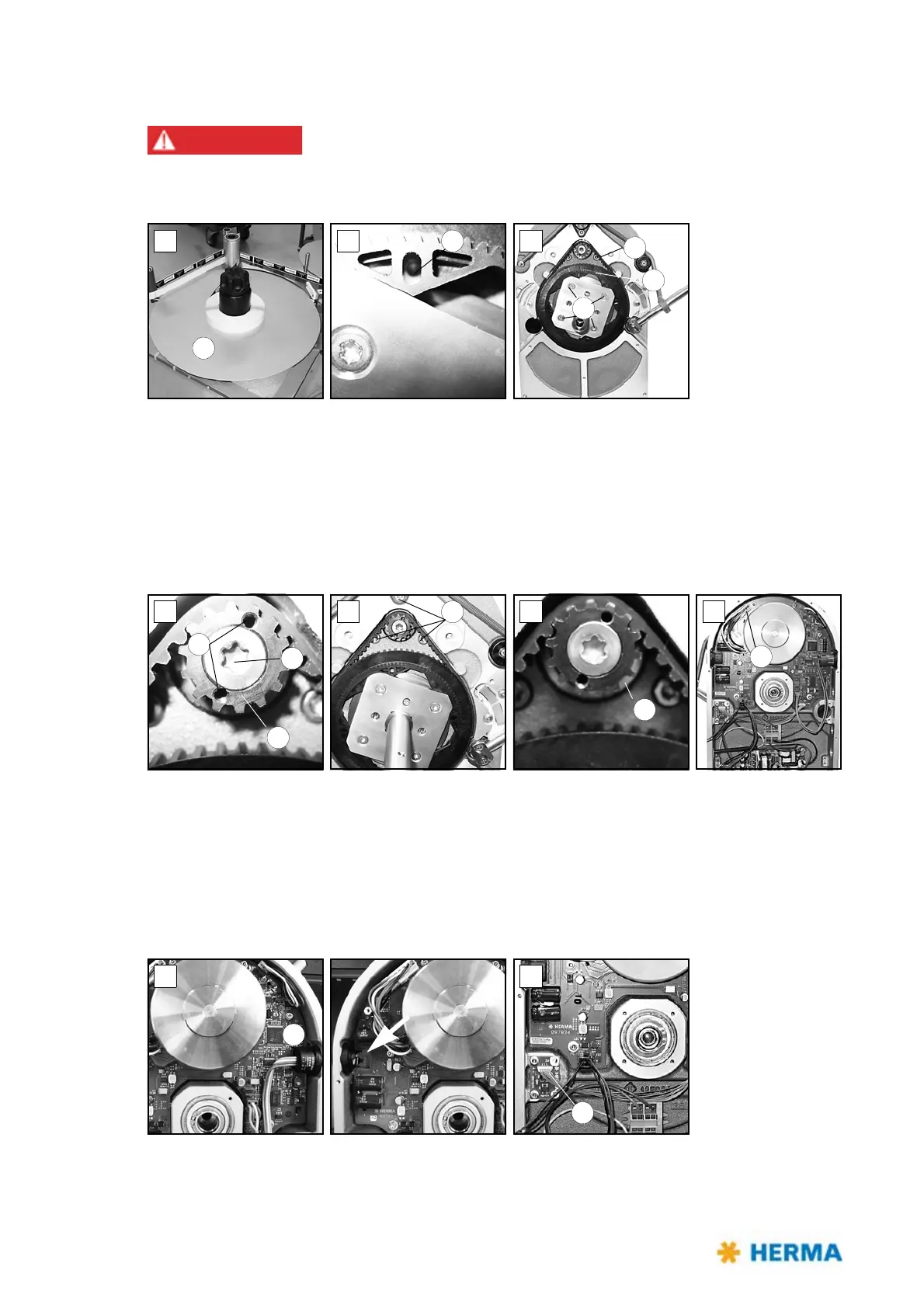 > Gear 6 is accessible (fig. D). Place two Allen screws M3x5 (DIN912) into holes 7 (functions as