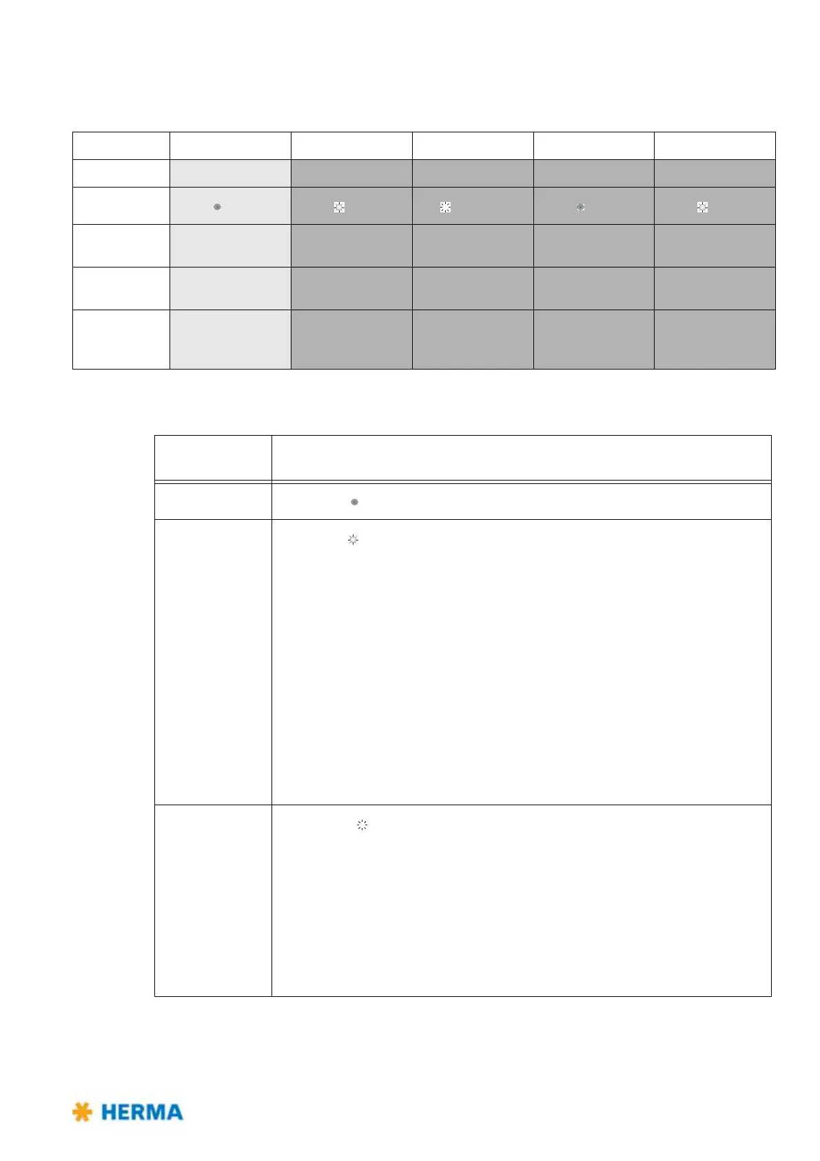 The label type set is indicated via the color of the LED: