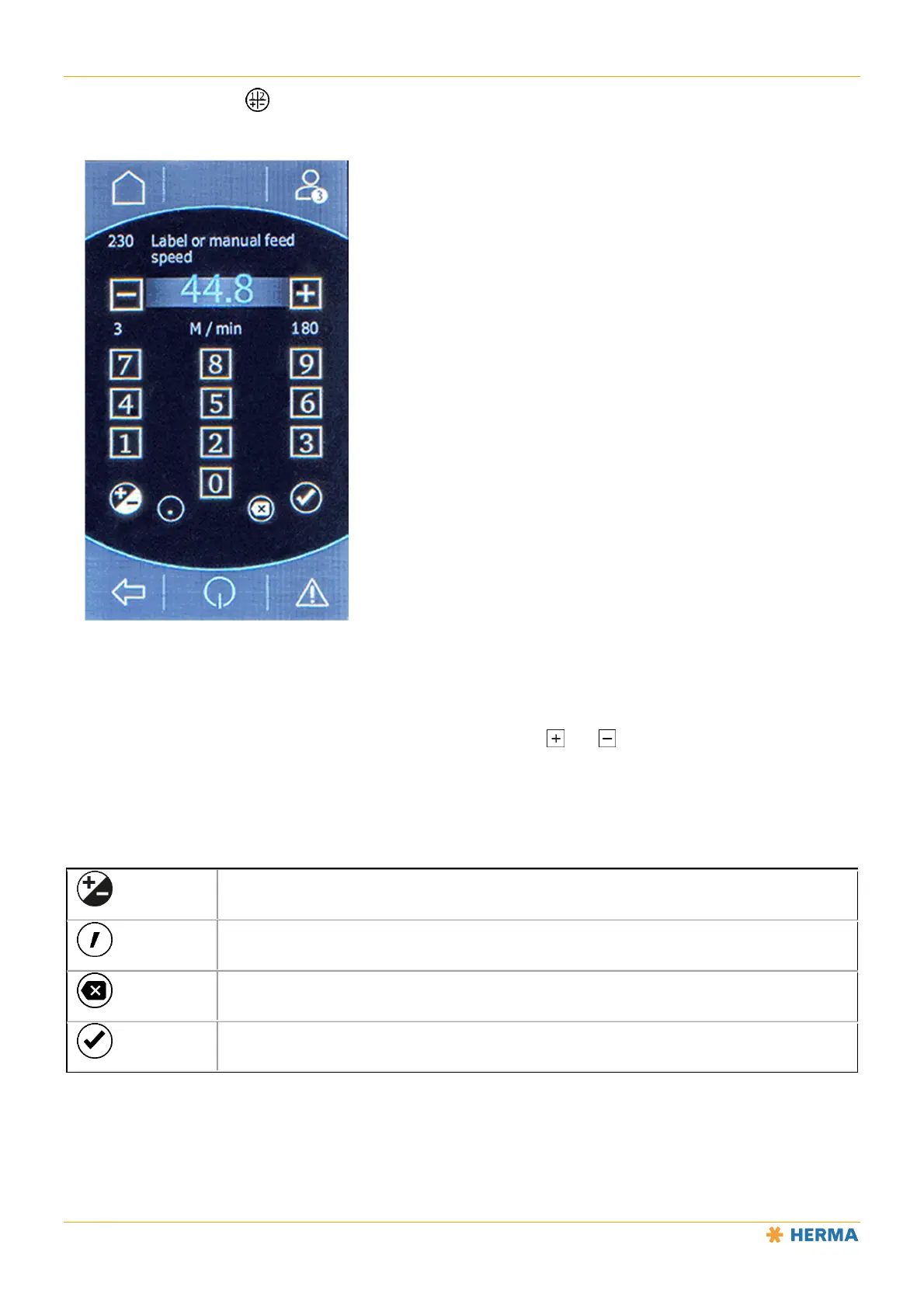Enter the desired value directly using the virtual keyboard or use the and buttons to increase (1) or