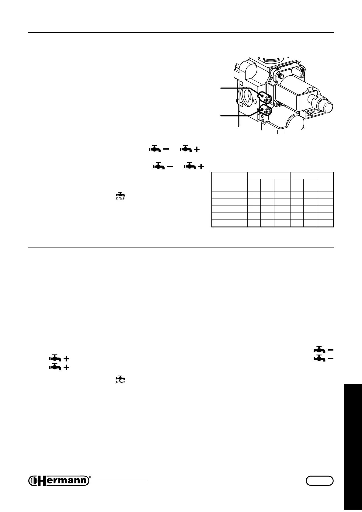table with power/gas pressure values. To regulate heating output proceed as follows: