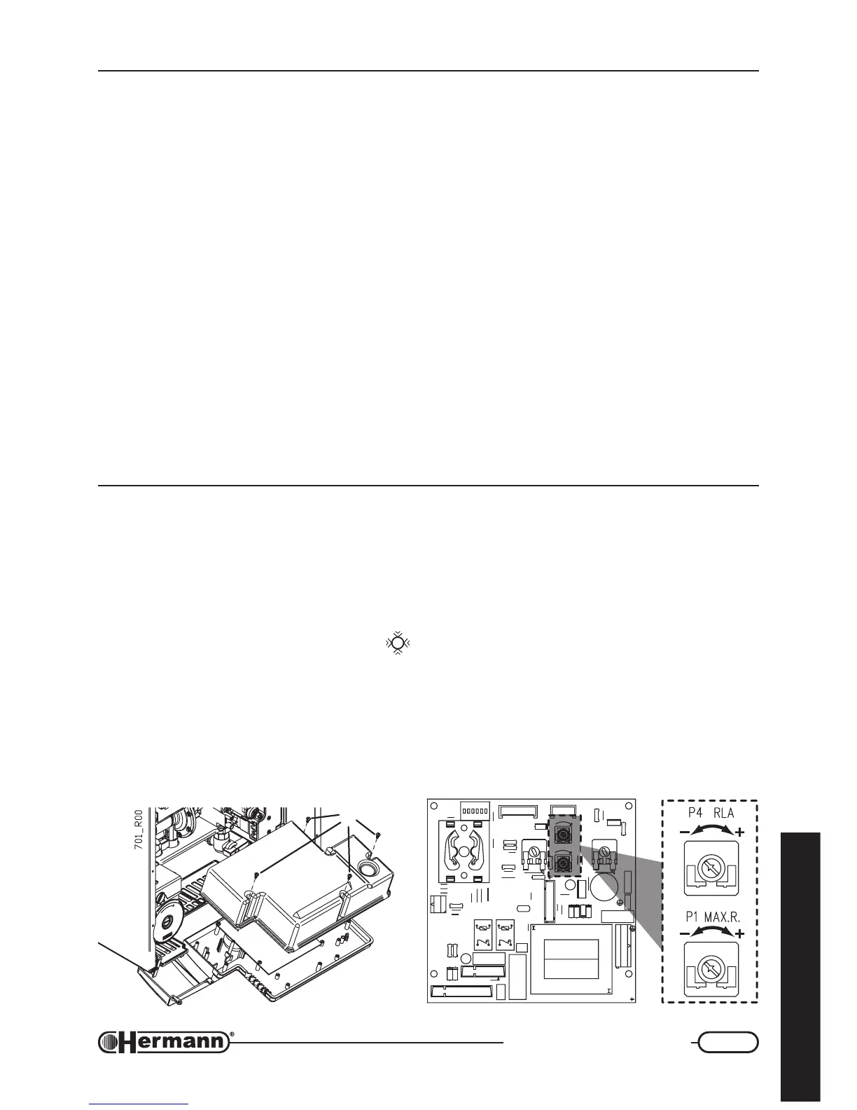 time to 30 seconds, turn the trimmer P1 MAX.R. completely in anticlockwise sense (it will be