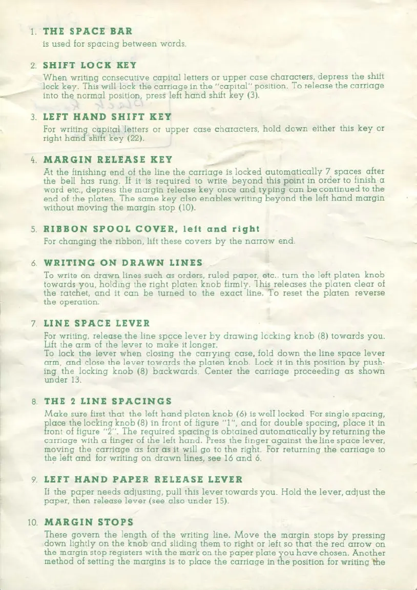 Hermes Rocket - Shift Lock Key; Margin Release Key; Line Space Lever; Margin Stops