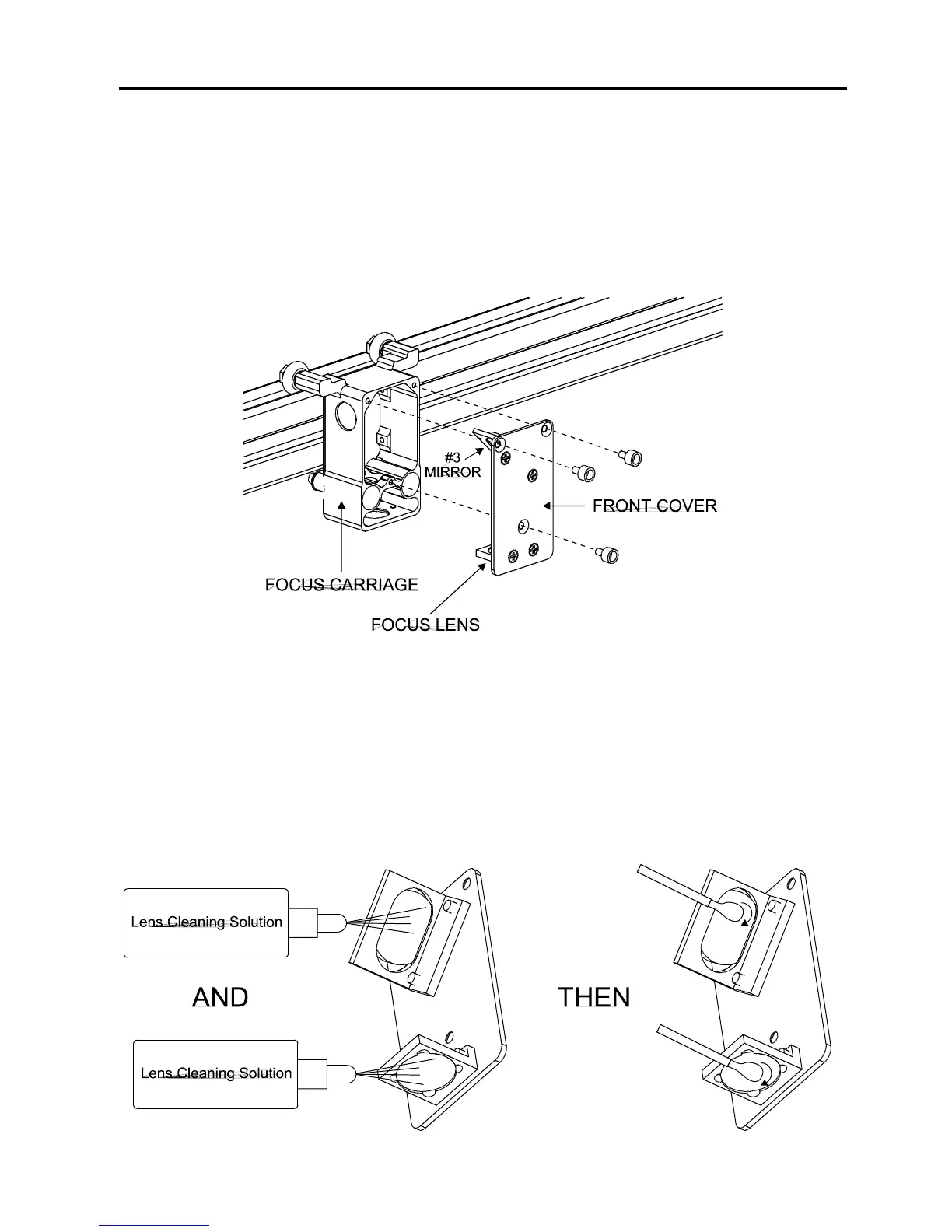 You must remove the front cover to the Focus Carriage to gain access to the #3 Mirror and the