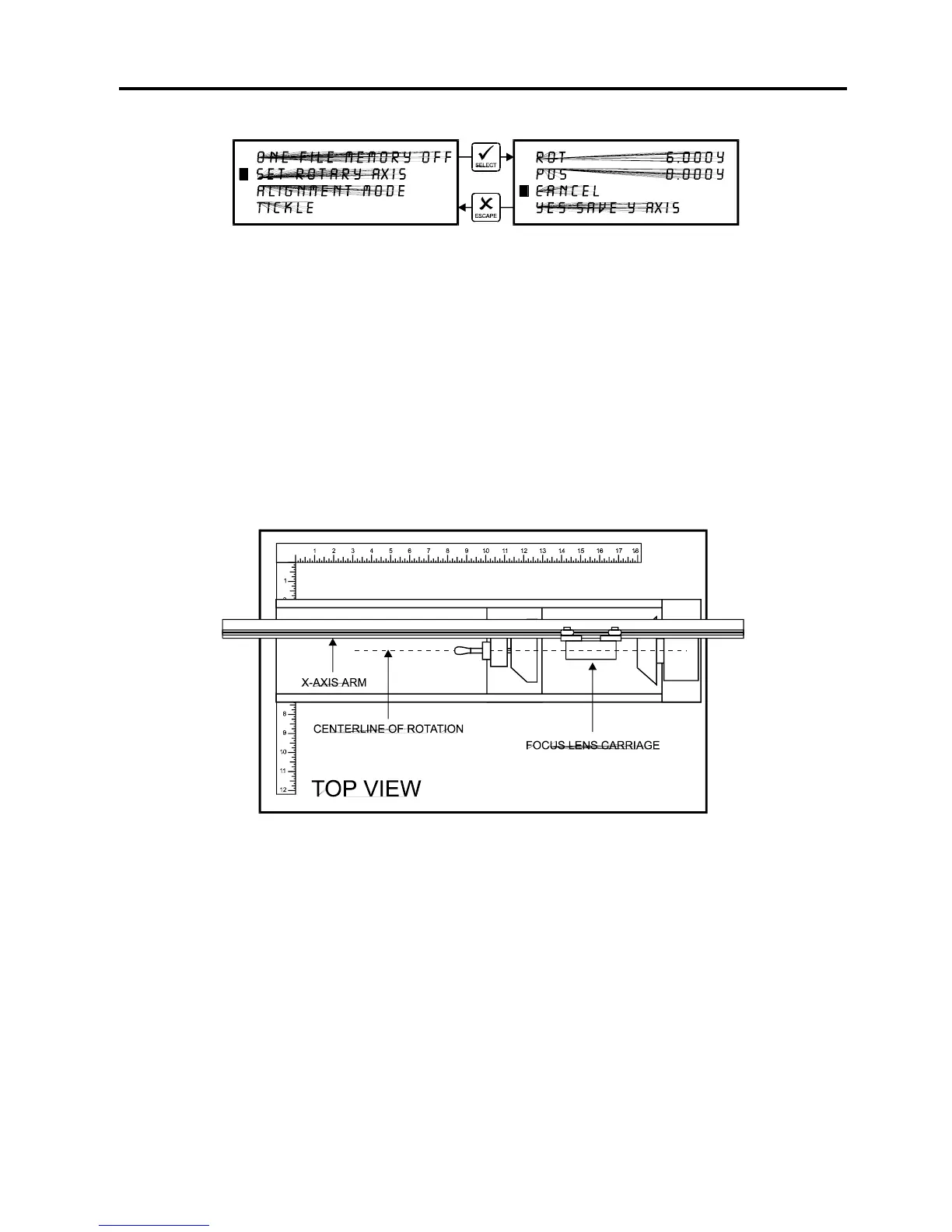 the “SET ROTARY AXIS” menu. While in this menu, press the up arrow and down arrow keys