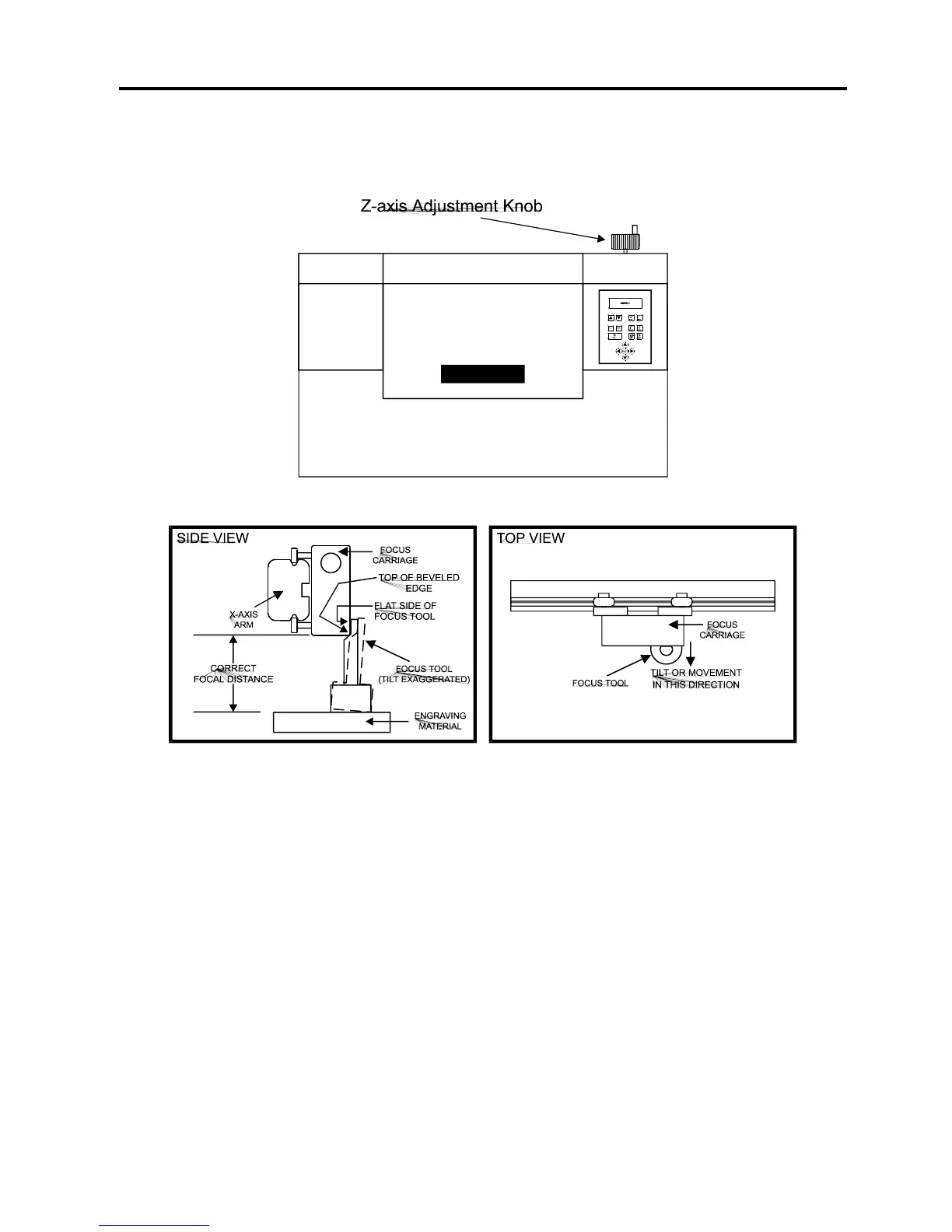 positioned over your material. Then use the Z axis adjustment knob and the focus tool to adjust