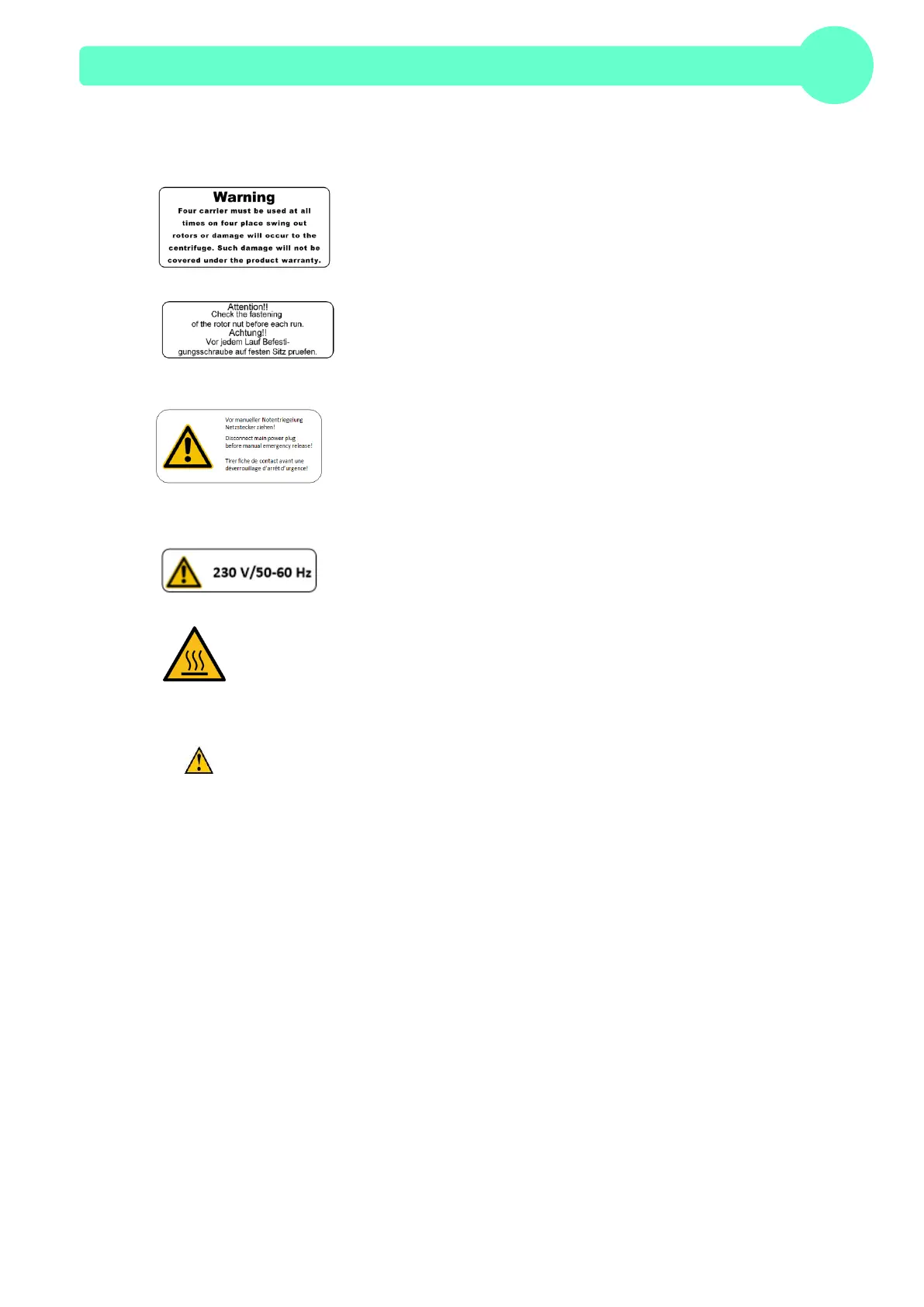 • It is prohibited to run the centrifuge, with rotors not manufactured for this unit.