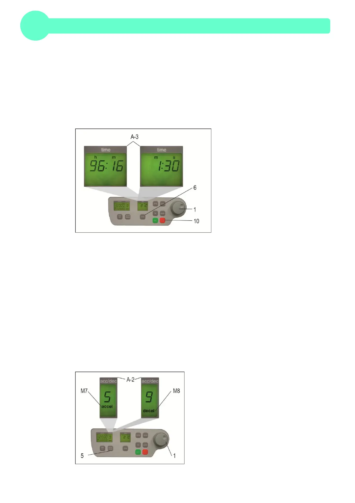 By pressing the key "accel/decel" (5) twice, in the display "accel/decel" (A-2), indicates the word