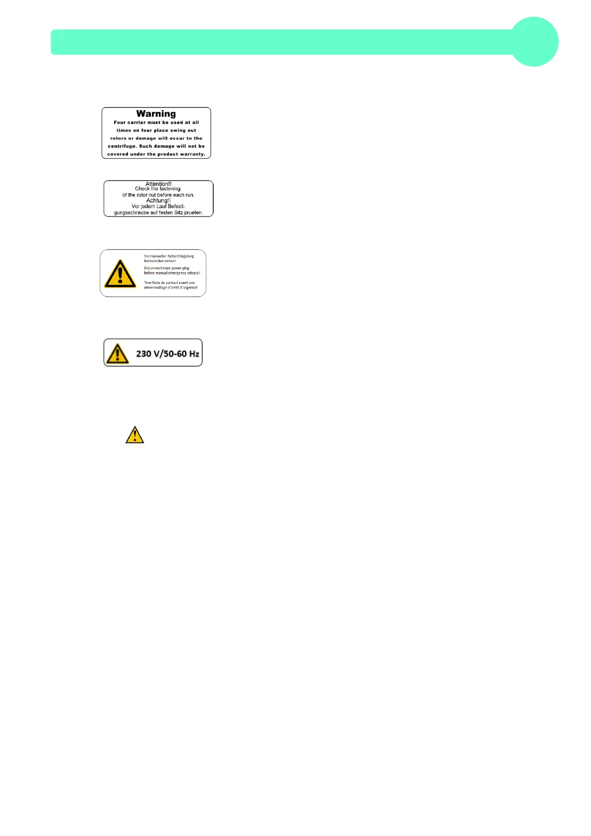• It is prohibited to run the centrifuge, with rotors not manufactured for this unit.