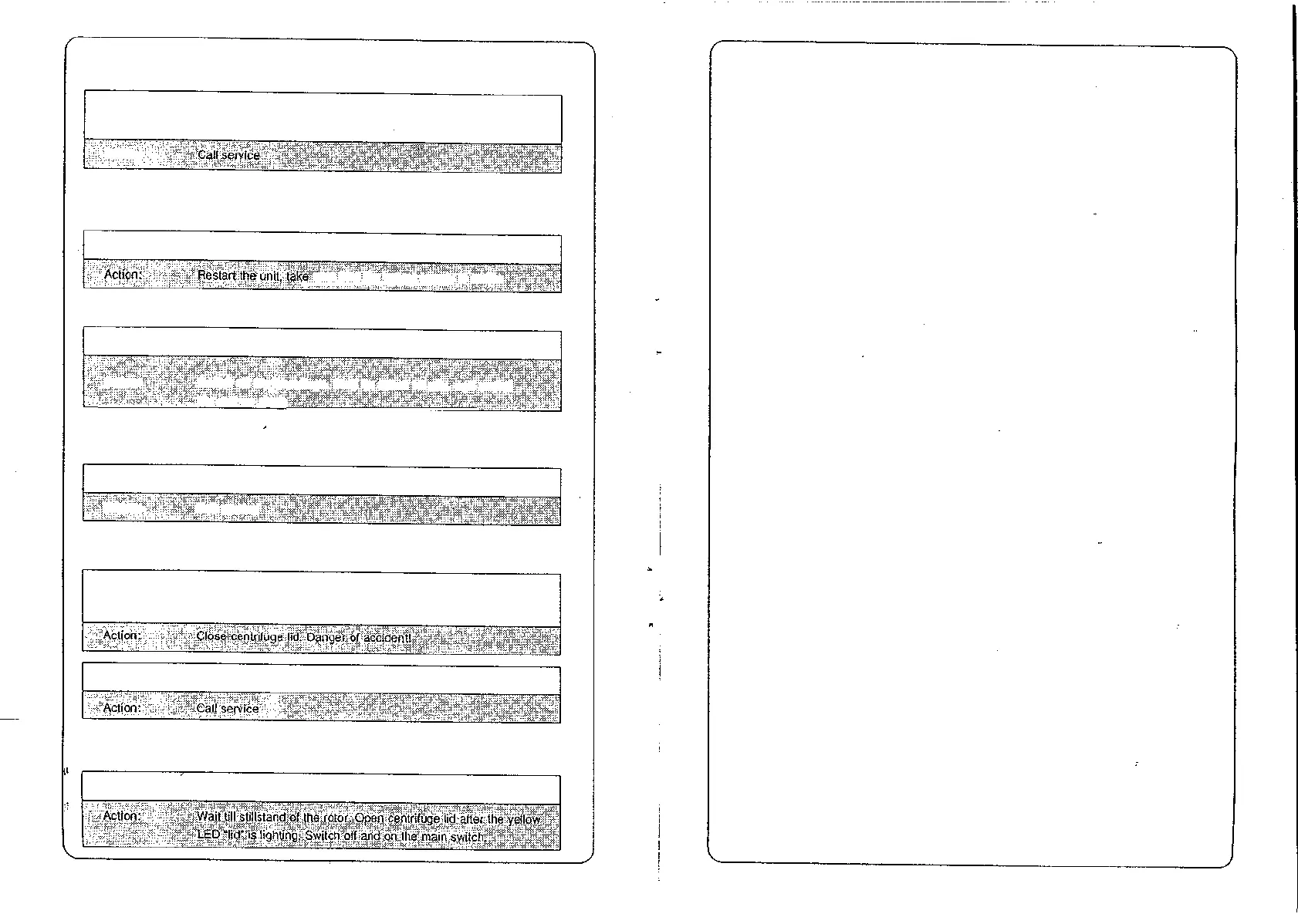 Action: Switch off the centrifuge, Wait for afaout 15 min. and switch