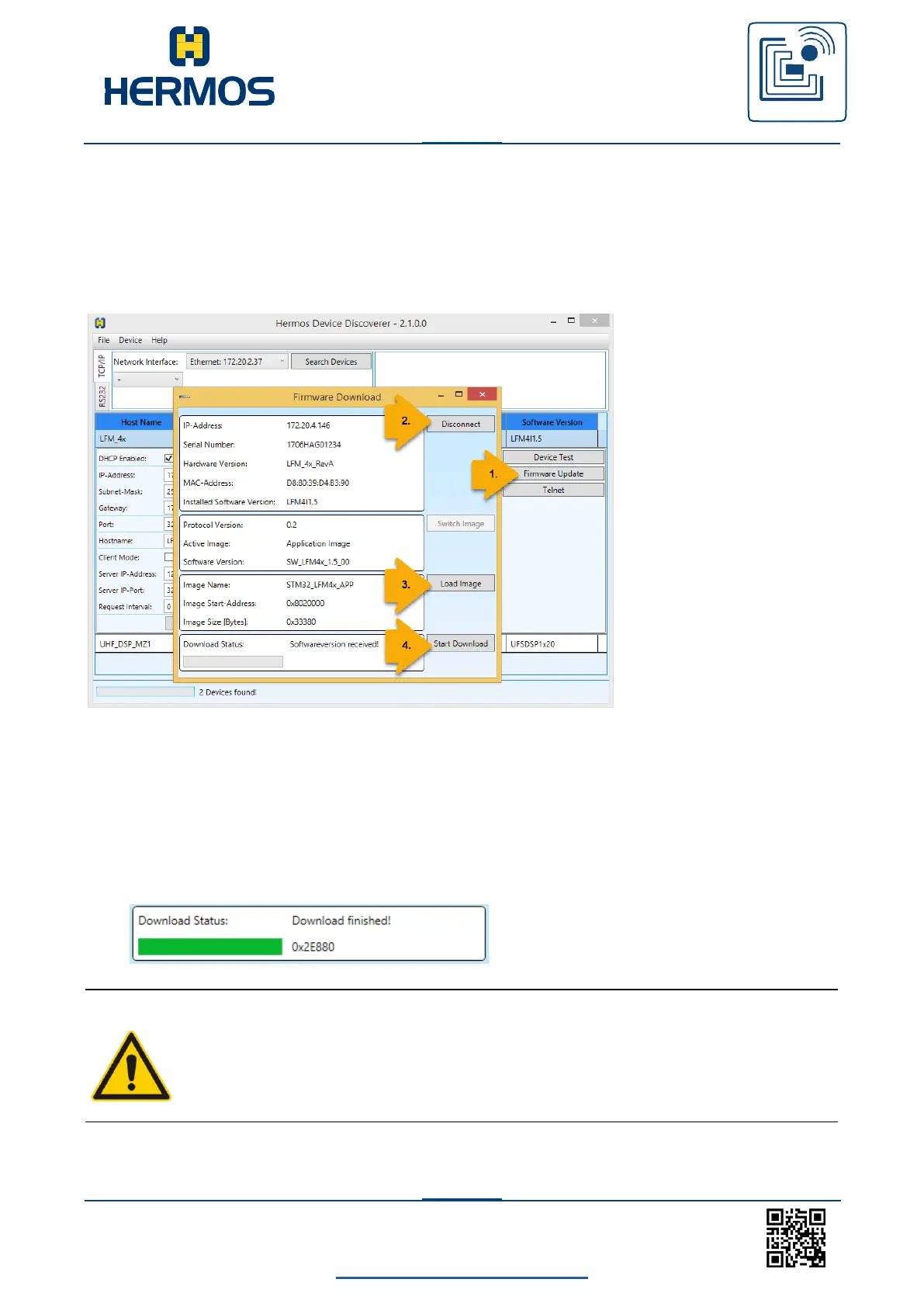 Firmware updates can also be performed using the HERMOS „DeviceDiscoverer“. Start