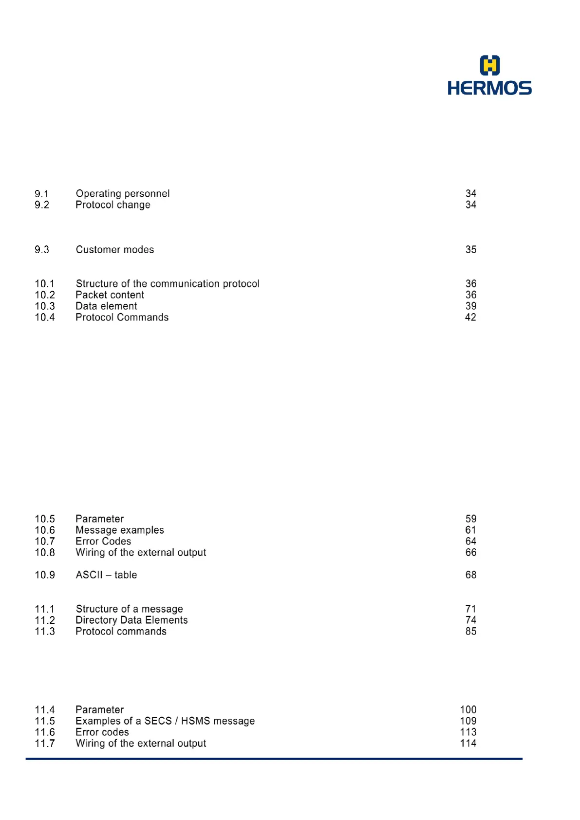 10. ASCI-I1 Communication protocol 36