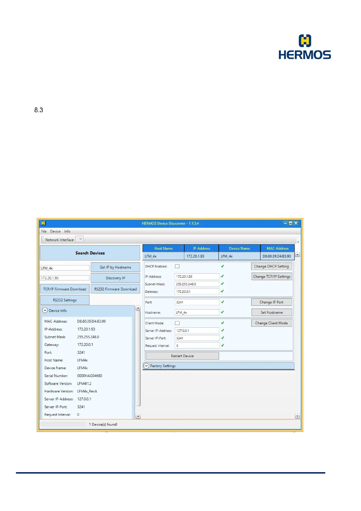 The HERMOS "Device Discoverer" is available for configuring the network setting. HERMOS components
