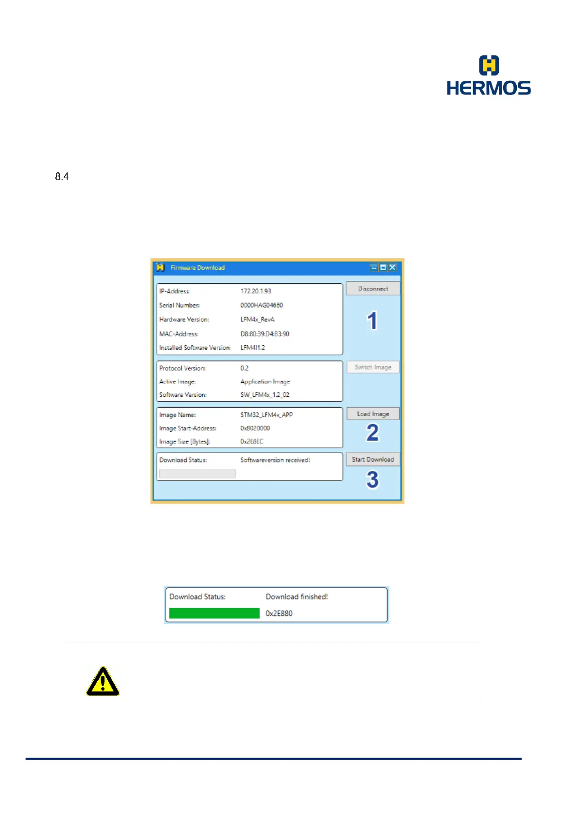 Firmware Download" button depending on your interface. Use "HERMOS" if you are asked to enter a