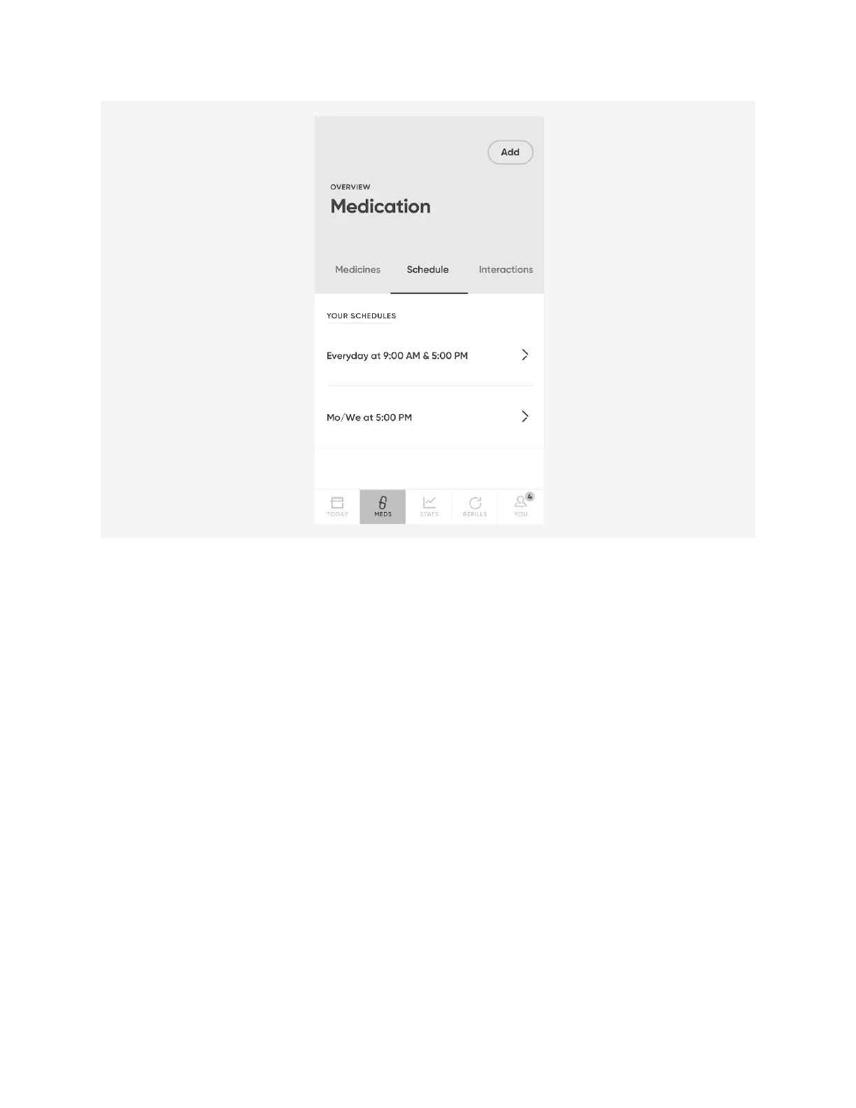 screen, select the schedule that includes the medication you
