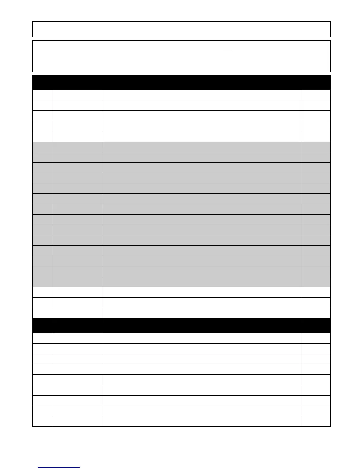 The quantity required, per unit, is shown for each part number. Part numbers in bold text indicate