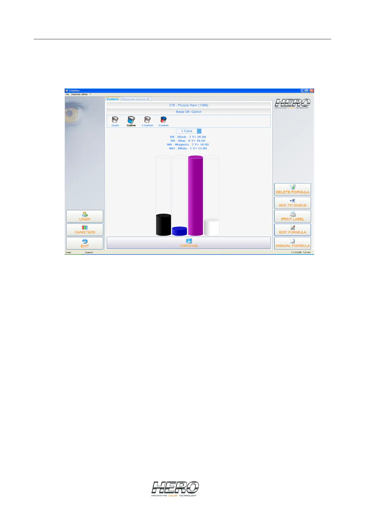 MANUAL FORMULA - Allows a manual or custom formula to be entered and dispensed.