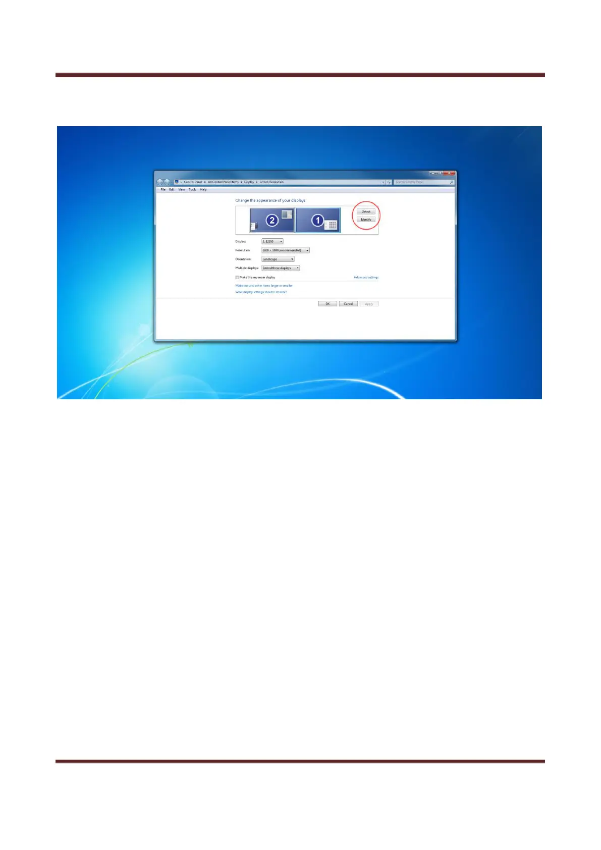 “Properties” (then “Settings”) or “Screen resolution”. You should now click “Detect” to allow the
