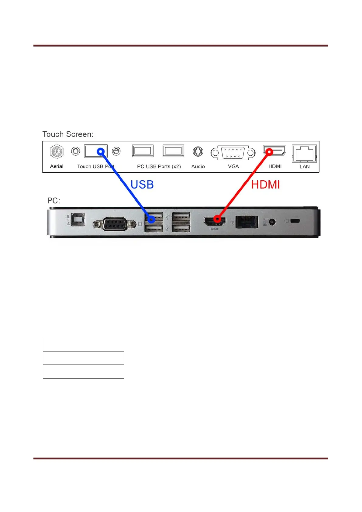 Connect the screen to the PC via HDMI cable and USB cable (as shown above). Once these