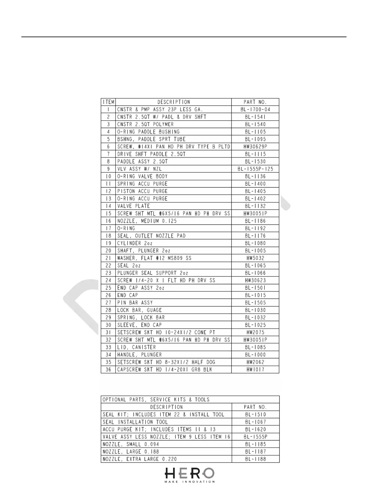 HERO D23 - Parts List - D23 Canister