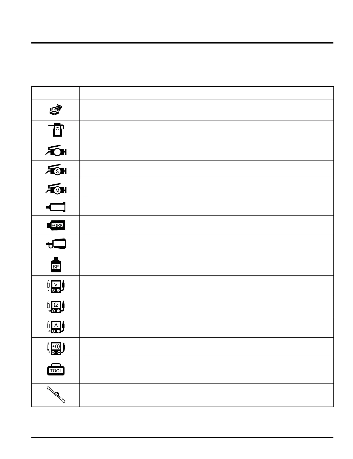 Listed in the table below are the symbols indicating instructions and other information necessary for servicing and meaning