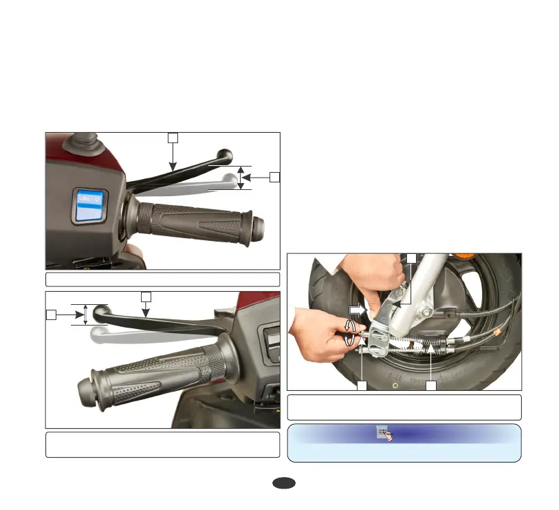(1) Front brake lever (3) Free play: 10-20 mm