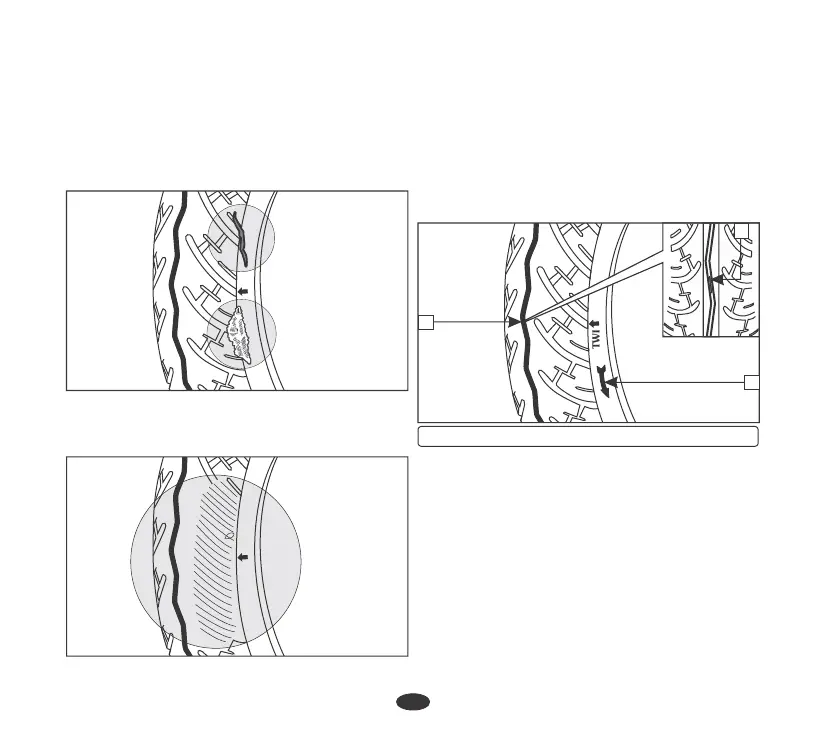 the tread. Replace the tyre if you find any