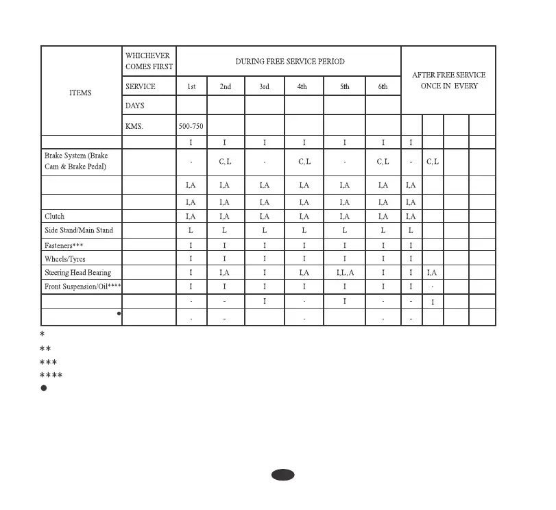 I: INSPECT R: REPLACE C: CLEAN L: LUBRICATE A: ADJUST IF REQUIRED O: OIL CHANGE T:TOP UP E: EMISSION CHECK
