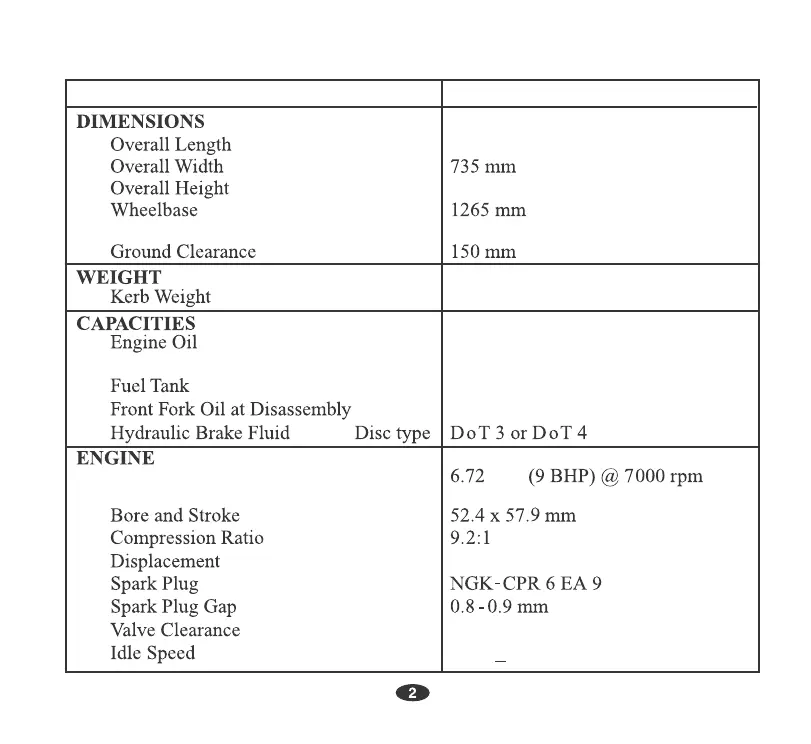 HERO GLAMOUR PROGRAMMED FI - PRODUCT SPECIFICATION; Dimensions, Weight, Capacities, and Engine Details