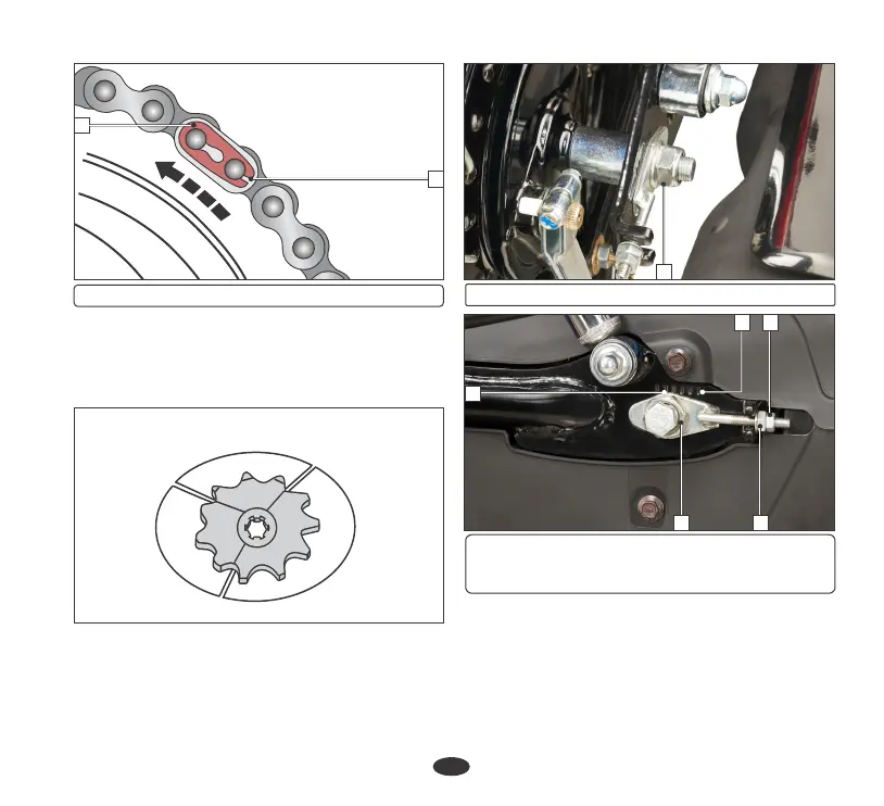 Ÿ Loosen the rear axle nut (1) and sleeve nut