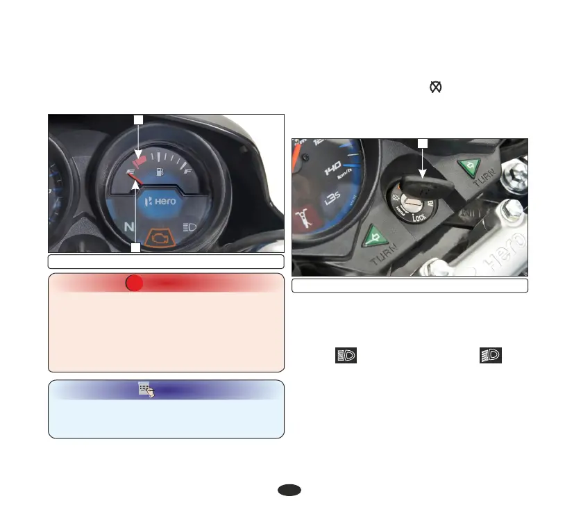 (1) Fuel gauge needle (2) Red band