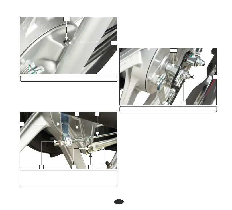 (1) Rear brake adjusting nut (2) Brake rod