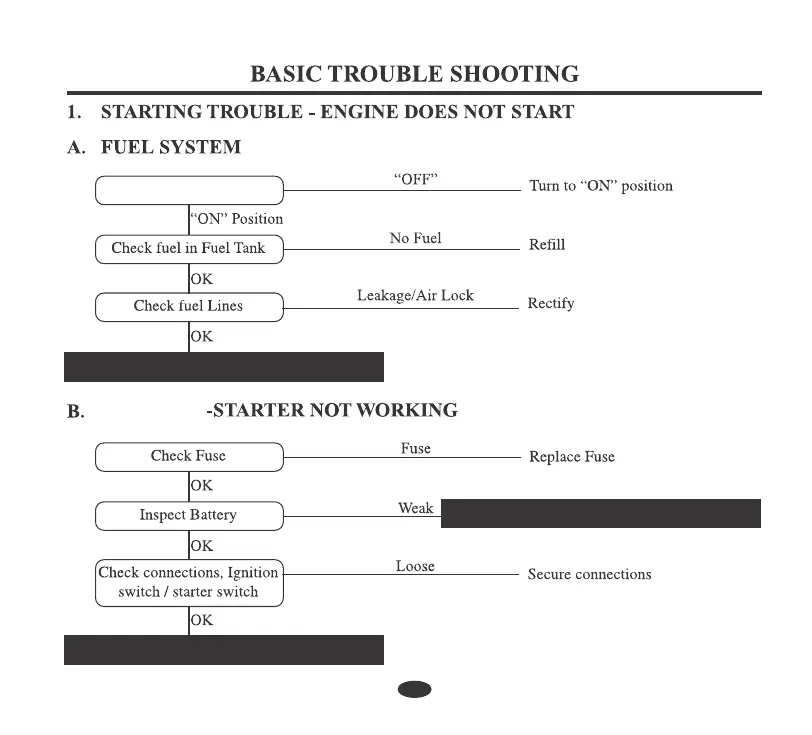 HERO HUNK - Basic Troubleshooting - Starting Issues; Engine Does Not Start - Fuel System; Engine Does Not Start - Electric Starter