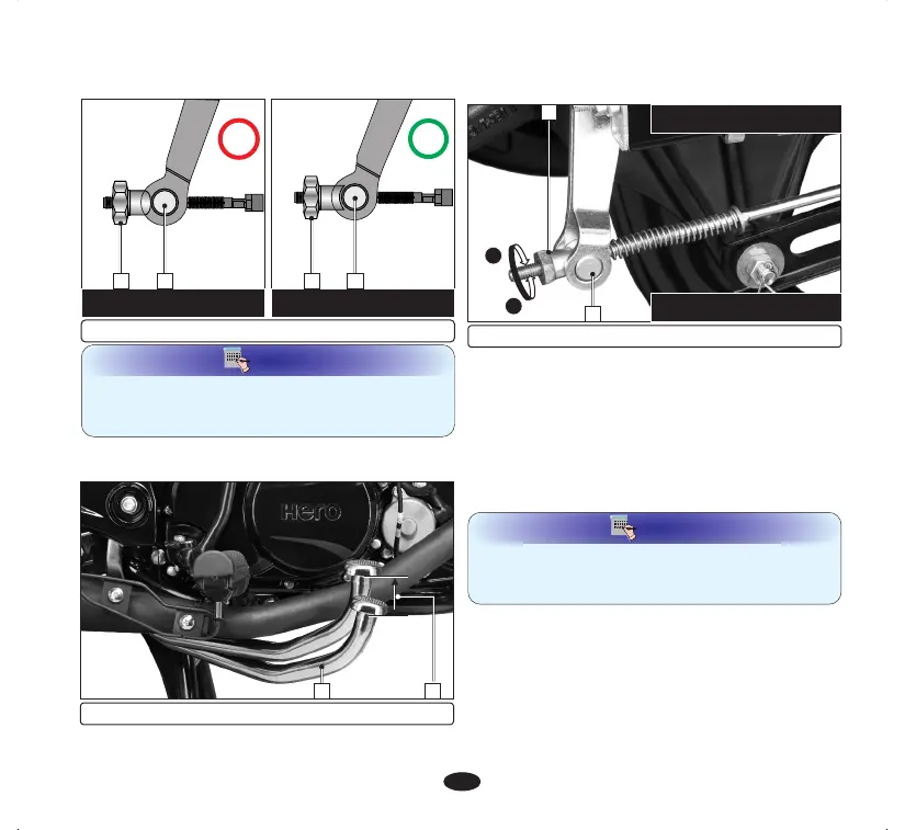 (1) Rear brake pedal (2) Free play: 20-30 mm