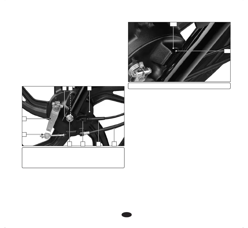 (1) Speedometer cable (2) Tab (3) Brake cable