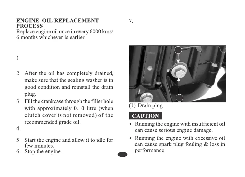 dipstick, drain plug (1) and washer (2).