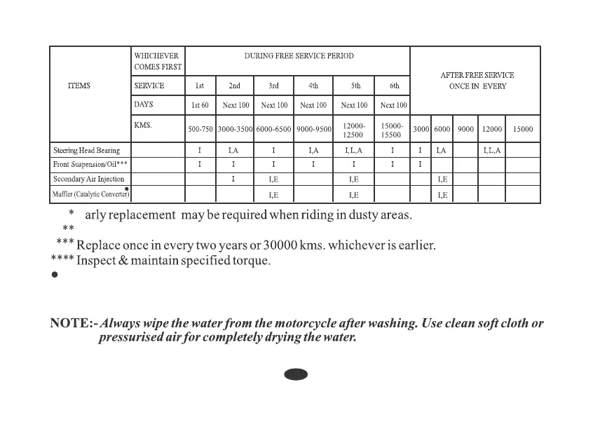 I: INSPECT R: REPLACE C: CLEAN L: LUBRICATE A: ADJUST IF REQUIRED O: OIL CHANGE T:TOP UP E: EMISSION CHECK