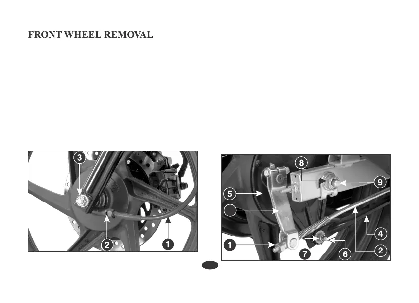 (1) Speedometer cable (2) Tab (3) Axle nut