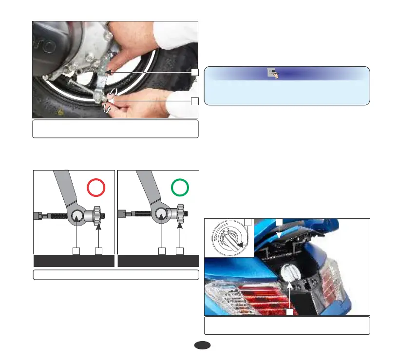 (1) Adjuster nut (2) Brake arm