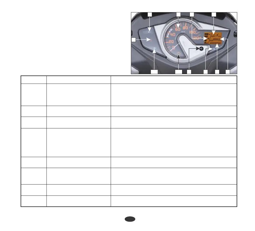 3 Speedometer Indicates riding speed.