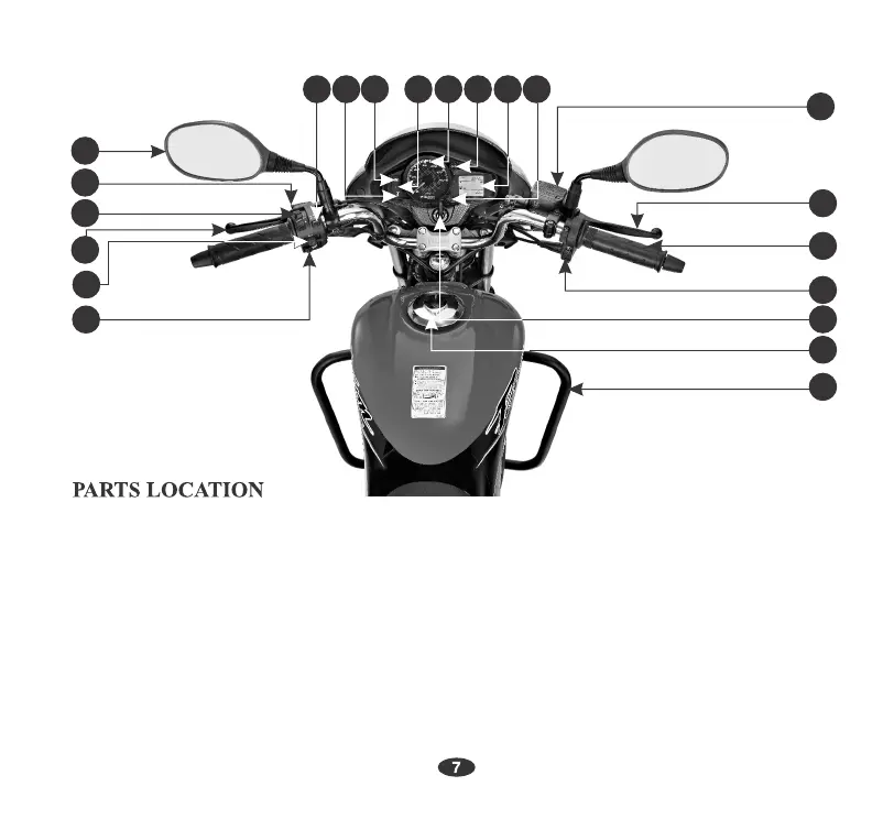 HERO Passion Pro - DESCRIPTION AND PARTS LOCATION; Front View Parts Identification