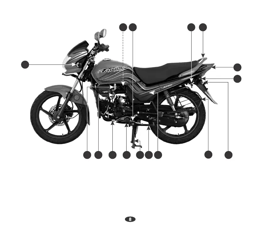 HERO Passion Pro - LEFT SIDE VIEW; Left Side Parts Identification