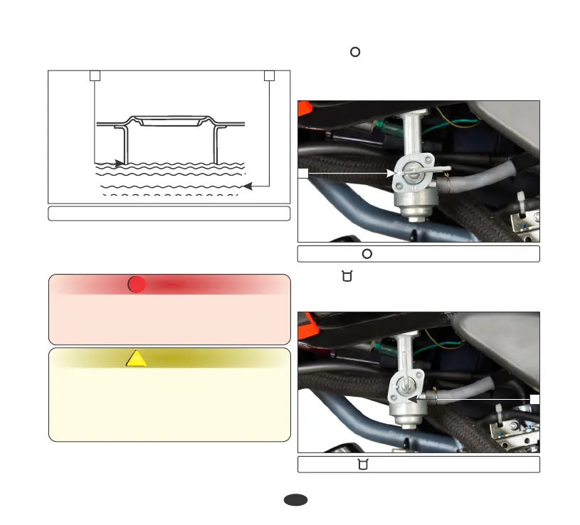 At “OFF” position (1), fuel cannot flow from