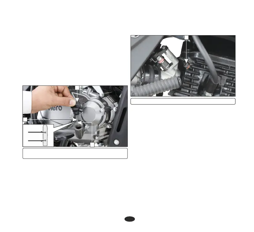 Slightly loosen the engine oil check bolt (4)